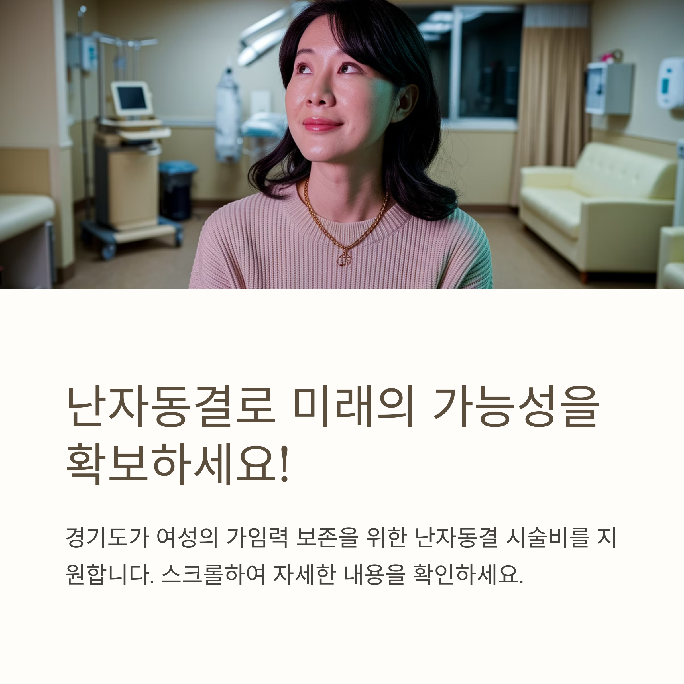 경기도는 2025년부터 '가임력 보존 지원 시범사업' 을 통해 난자동결을 원하는 여성에게 시술비를 지원합니다.