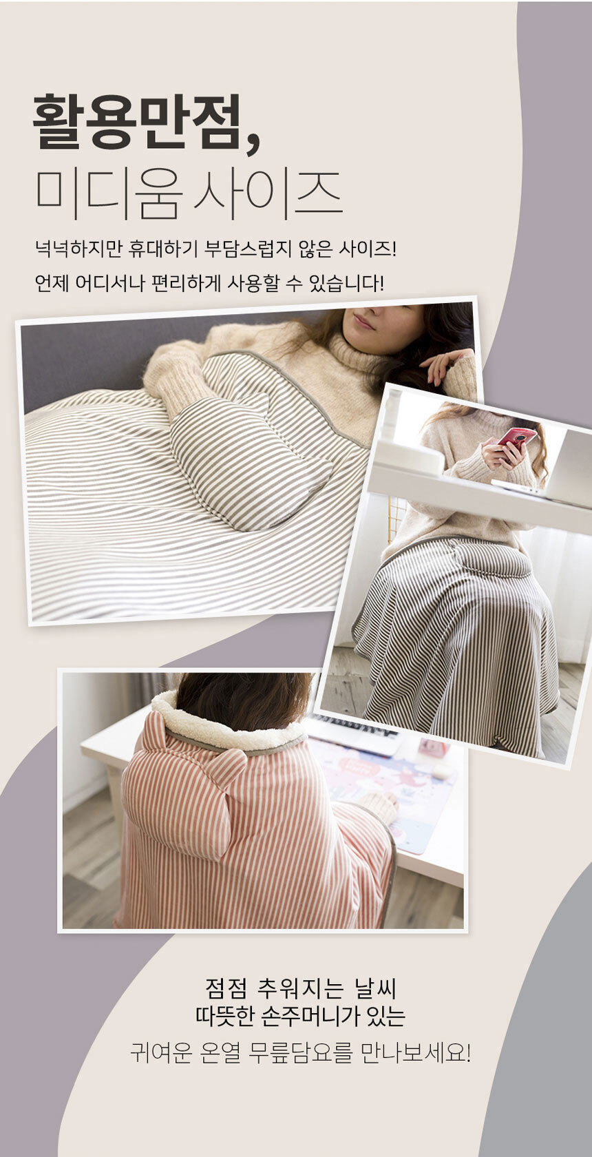 보일러를 계속 켜기엔 부담스럽고, 큰 전기장판을 쓰기엔 번거로운 상황에서