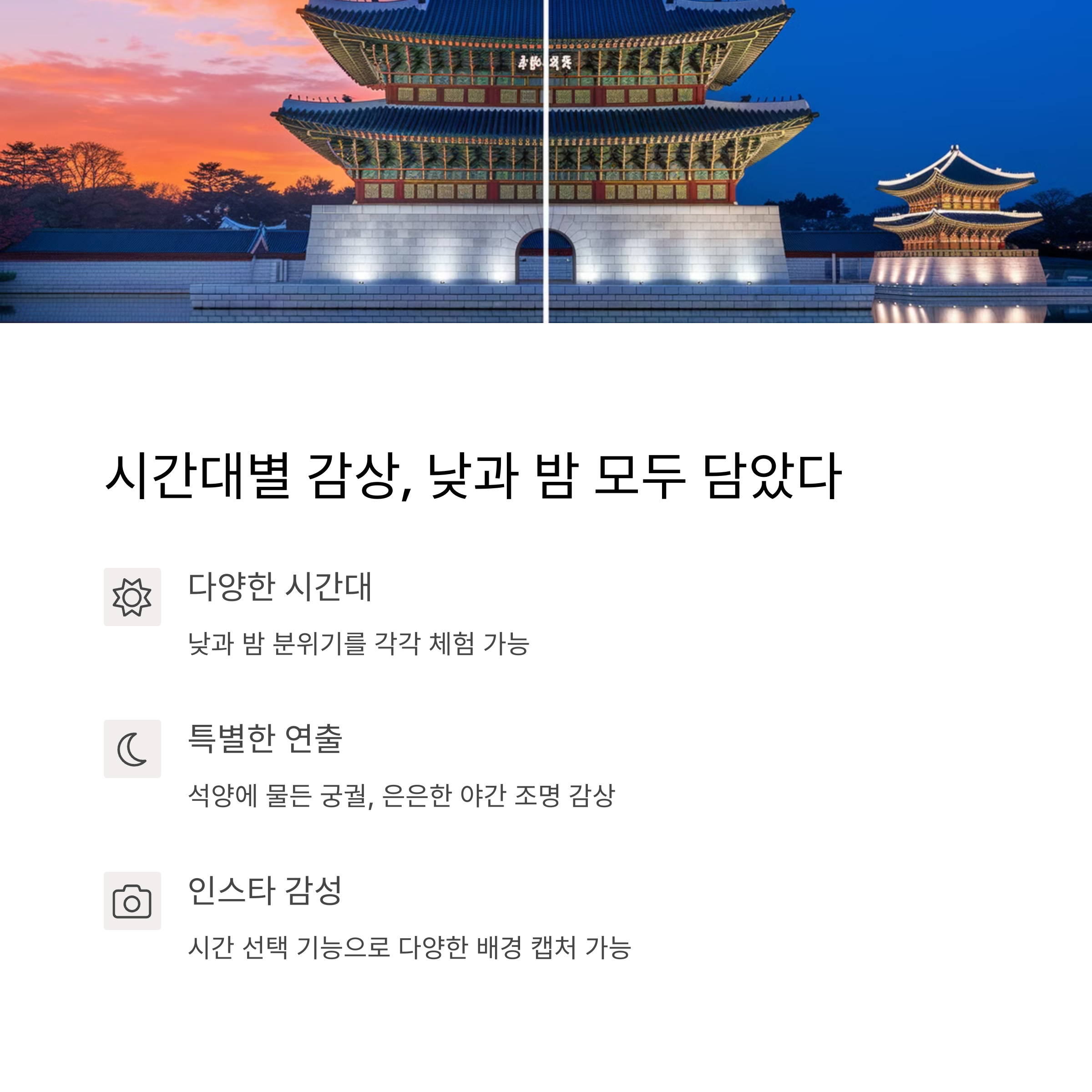 4️⃣ 시간대별 감상, 낮과 밤 모두 담았다