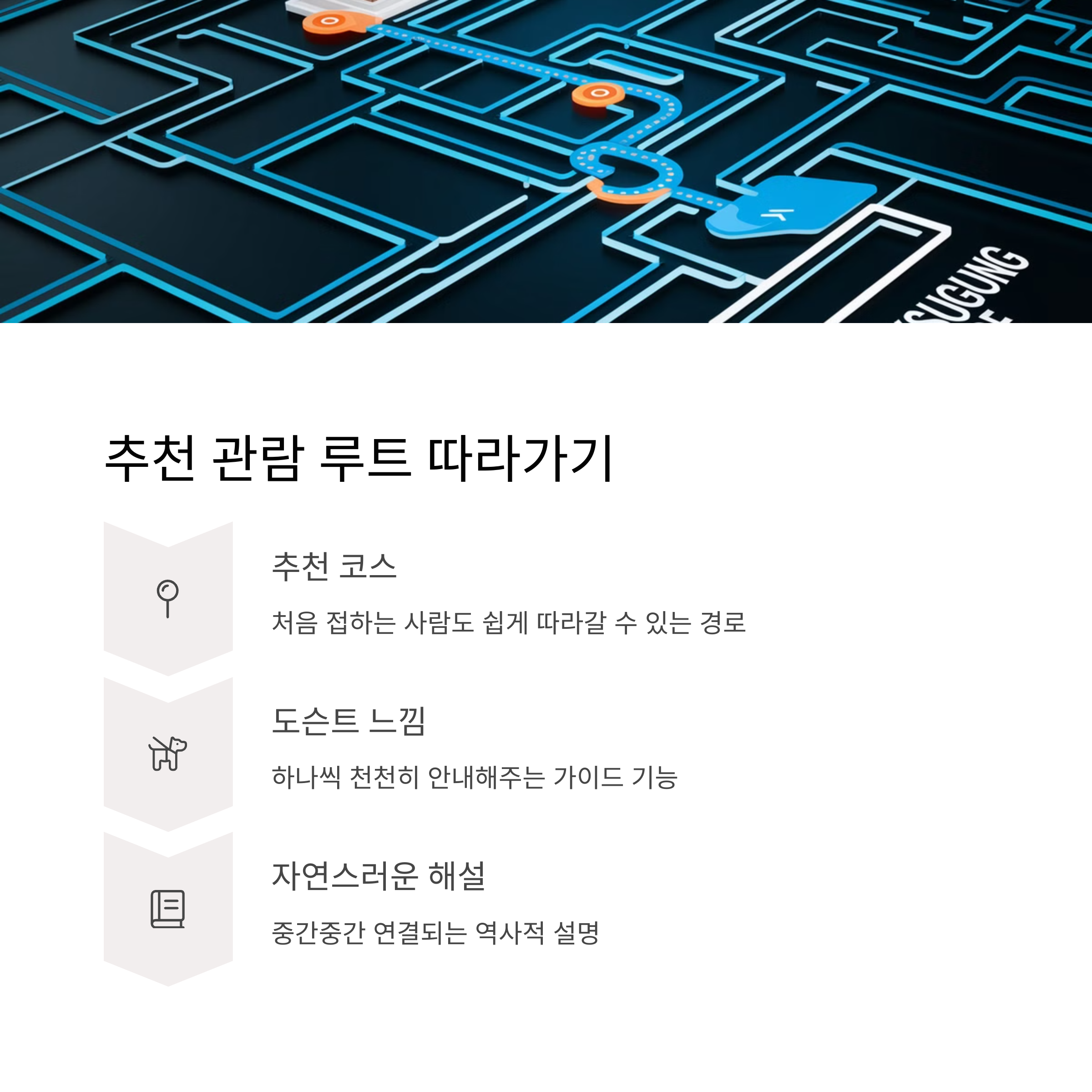 ✔️ 코스 따라가기 기능으로 순서 있는 관람
