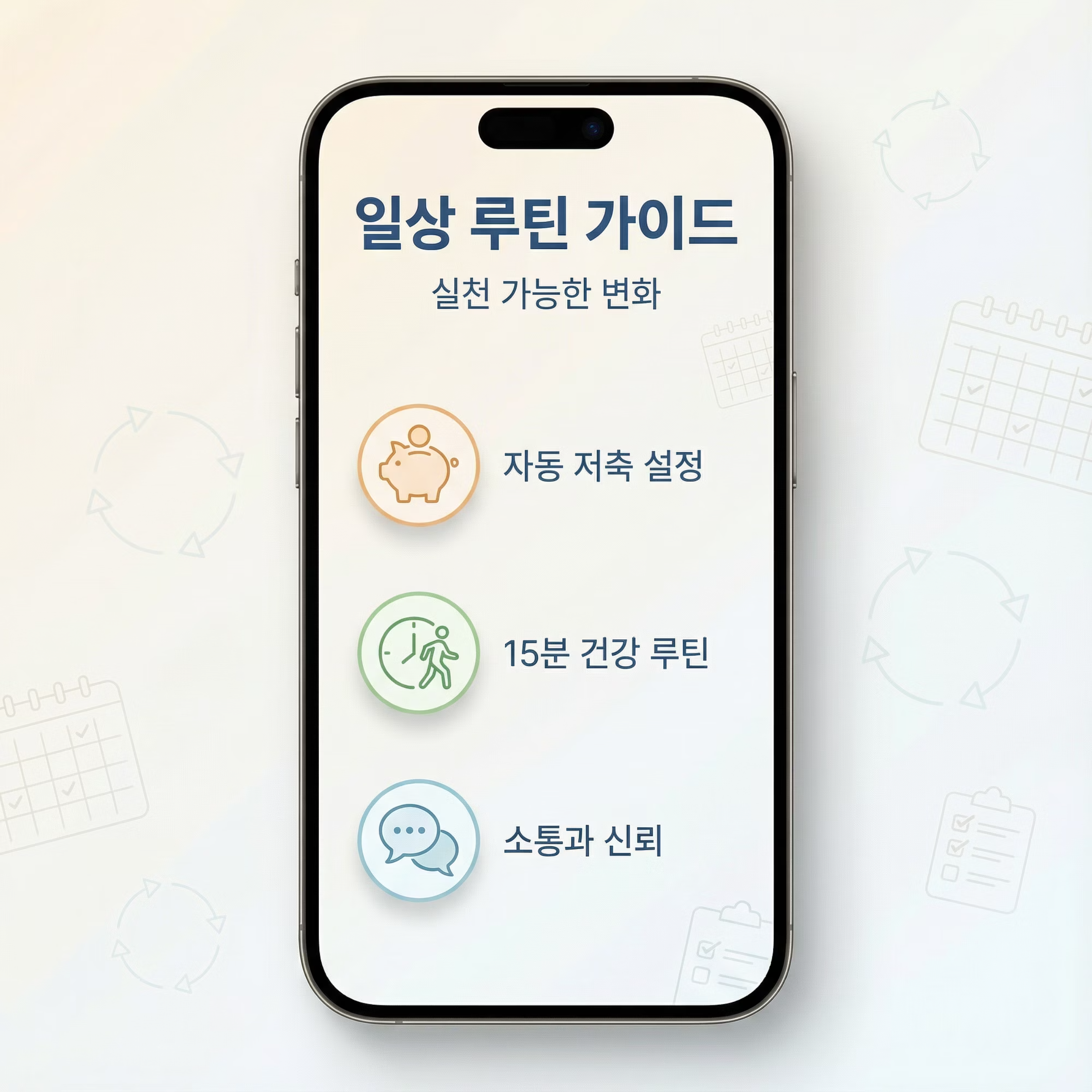 - 건강 관리: 하루 15분 산책, 가벼운 스트레칭 습관화